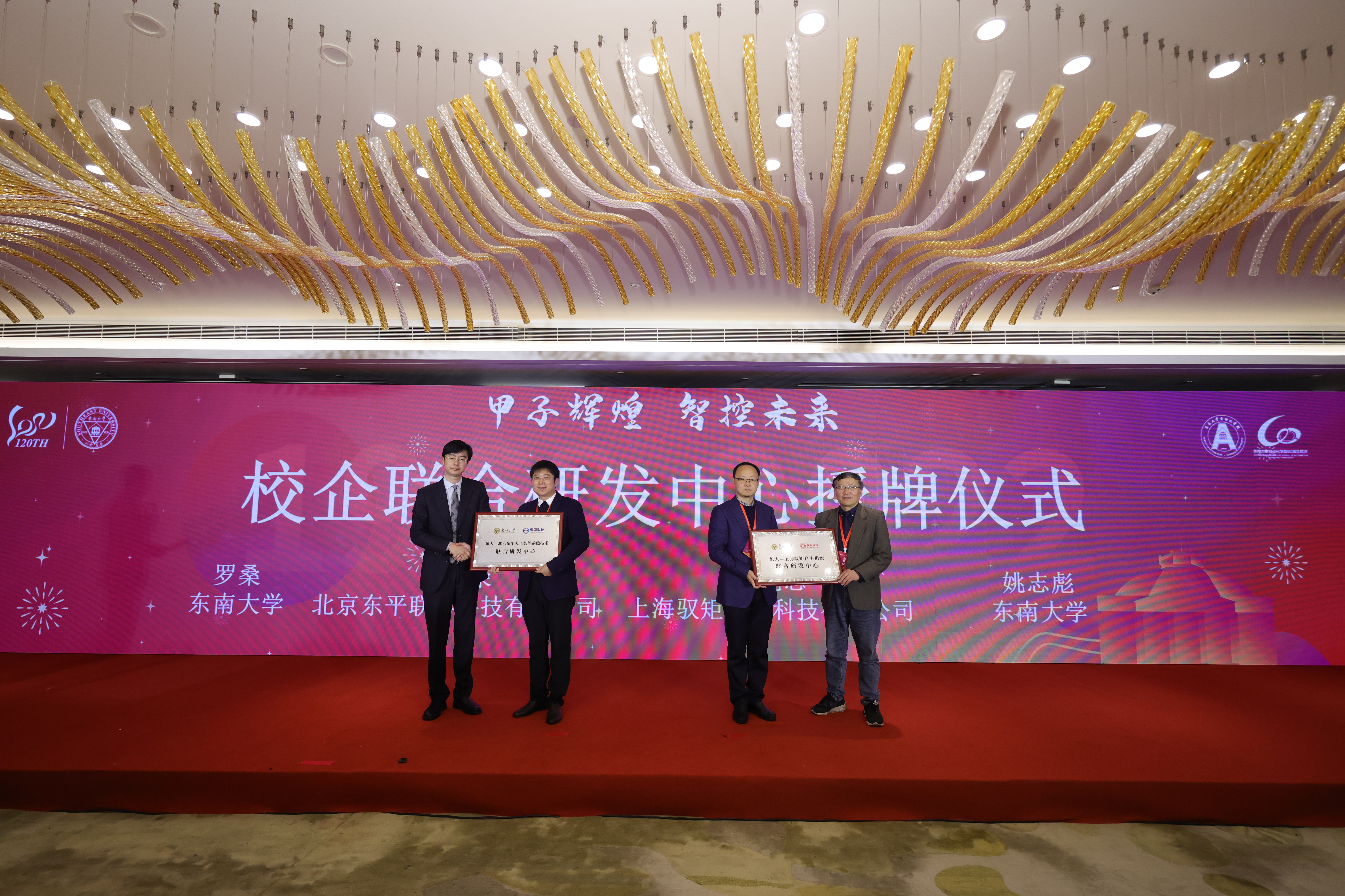 无码流出 党委书记金立左主持校企联合研发中心授牌仪式。姚志彪秘书长、罗桑副院长代表无码流出 ,分别向上海驭矩信息科技有限公司、北京东平联祥科技有限公司授予校企联合研发中心牌匾。