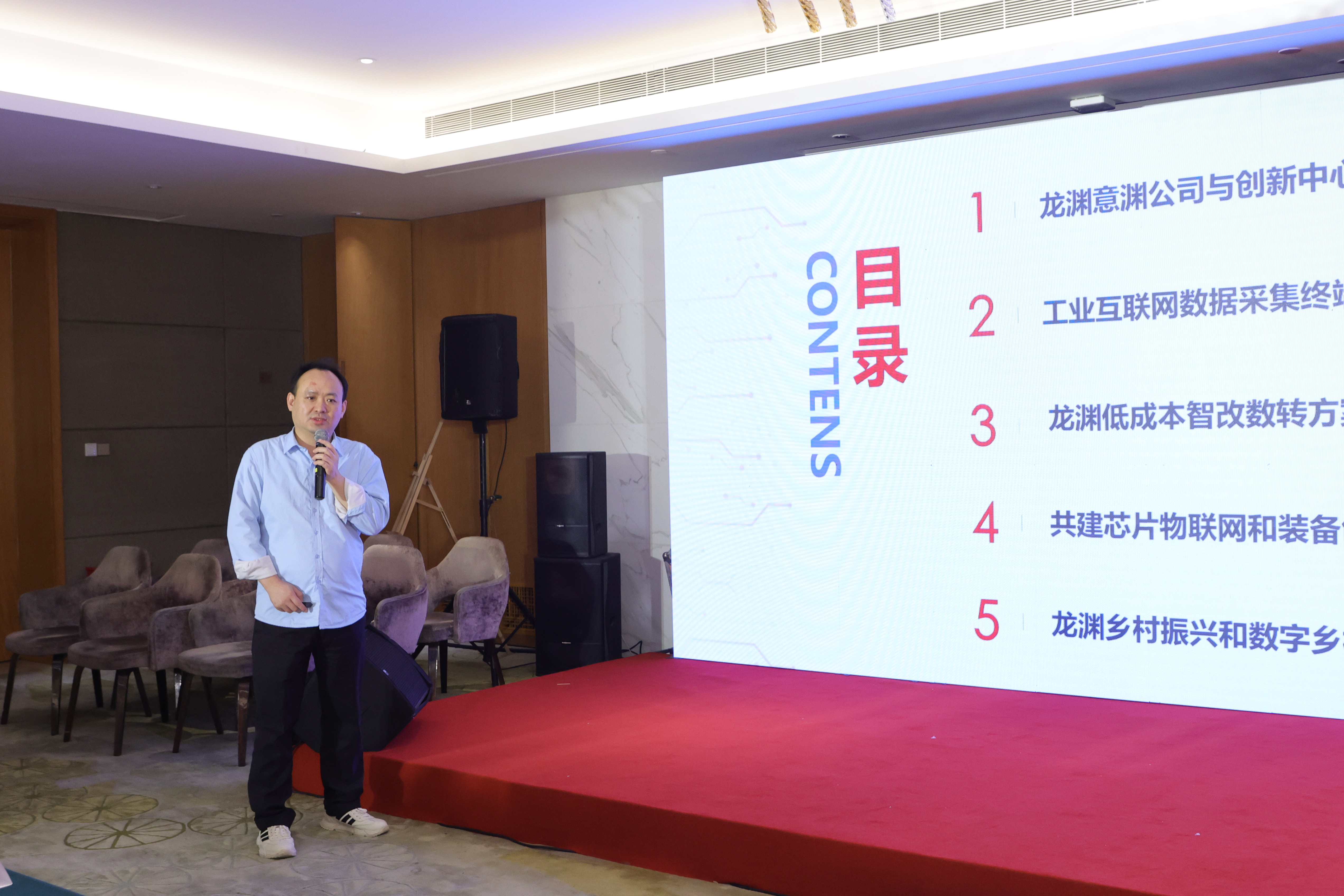南京龙渊微电子科技有限公司董事长陈勇作专题报告,提出了基于工业数据采集终端的低成本智改数转方案暨共建智能农机装备创新中心的建议。