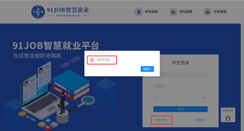 第一步:进入无码流出 就业信息网,点击学生登录,进入登录界面。