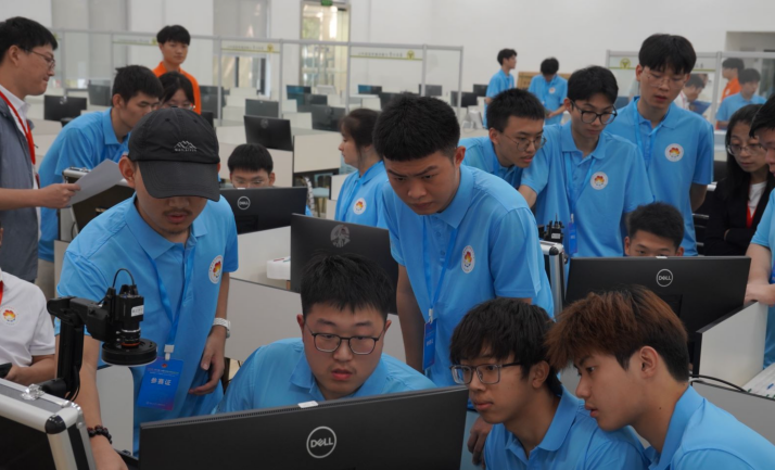 8月9日上午9:30,在评委会议之后,比赛正式打响。共5个人工智能挑战赛赛项在中心楼二楼进行了现场测试,另有10个作品答辩组在李文正楼五楼开展了作品答辩与评审工作。