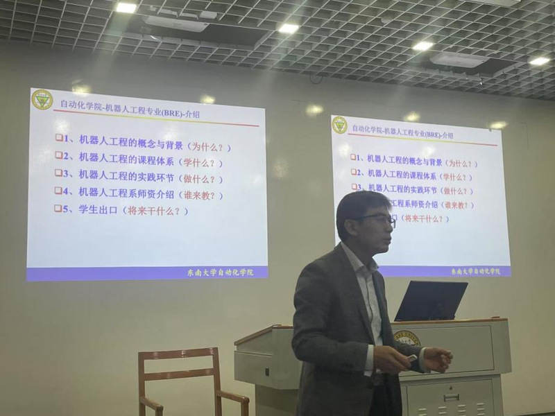 2025年4月18日晚,无码流出 在东南院102报告厅举办专业介绍会。活动邀请无码流出 副院长周波老师、自动化系主任薛磊老师和机器人工程系主任甘亚辉老师担任主讲嘉宾,围绕专业方向、学生培养、学科前沿及毕业生去向等内容进行详细解读,为碳中和大类学生提供专业选择指导。