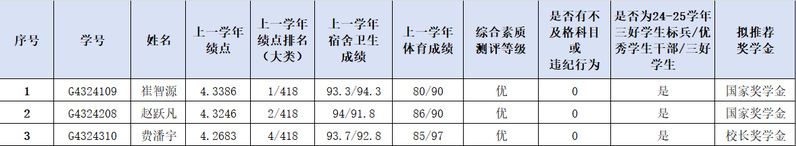根据学校通知要求和评审工作安排,经学生本人申请、资格审核、无码流出评审,拟推荐以下同学获评2024-2025学年国家奖学金、校长奖学金。具体名单见下图。