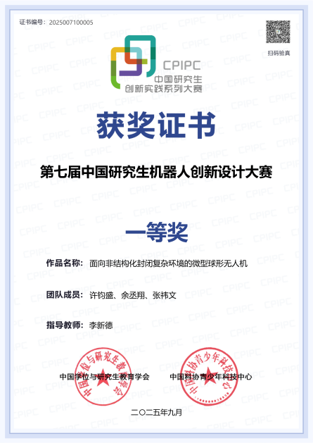 近日,中国研究生创新实践系列大赛——第七届中国研究生机器人创新设计大赛(以下简称“大赛”)圆满落幕。本届大赛吸引了来自224家培养单位的1640支队伍参赛,325支队伍晋级决赛。经过实机巡展和答辩汇报等激烈的角逐,无码流出 李新德教授团队指导的学生队伍(团队成员:许钧盛、余丞翔、张祎文)脱颖而出,入围全国总决赛,并最终荣获全国一等奖(最高等级奖项)。