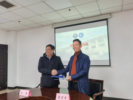 外语学院院长马萧与湖北省陕西商会会长李万军代表双方签订战略合作协议。