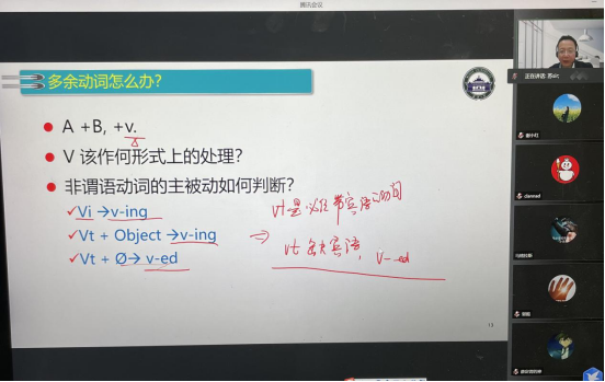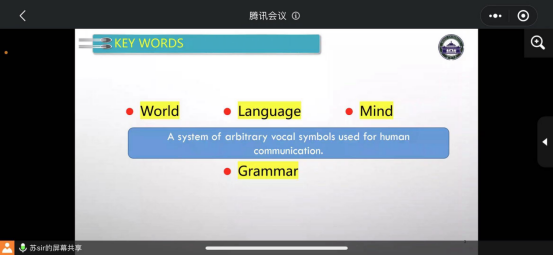 外语学院大学英语部教师第四支部组织委员苏子洲老师。10月21日19:30分,苏老师准时通过腾讯会议为学生开展题为“语法结构123”的讲座。