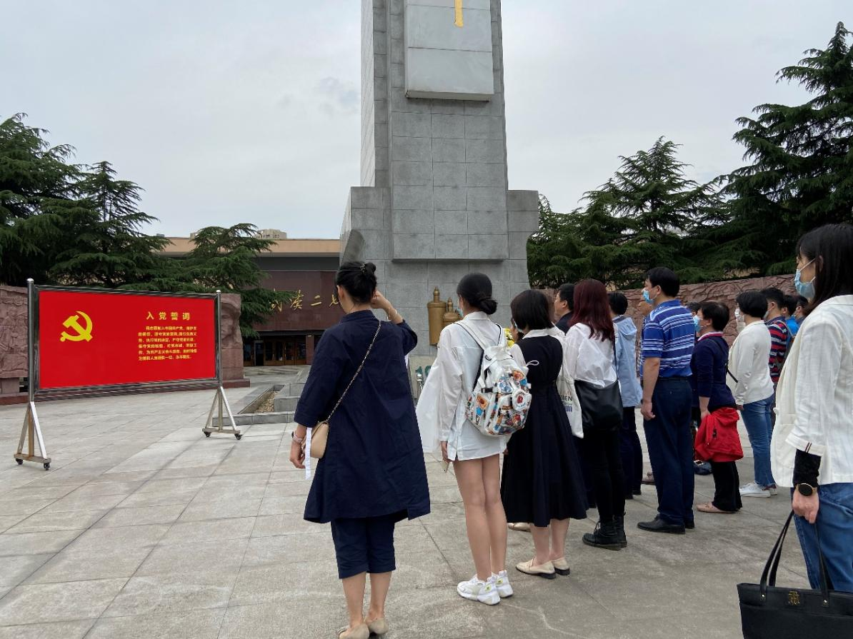 在院党委副书记孙燕的带领下,参加此次活动的全体党员同志在二七烈士纪念碑前重温入党誓词,在党的革命先辈挥洒过鲜血的地方,传承红色基因,回顾入党初心。