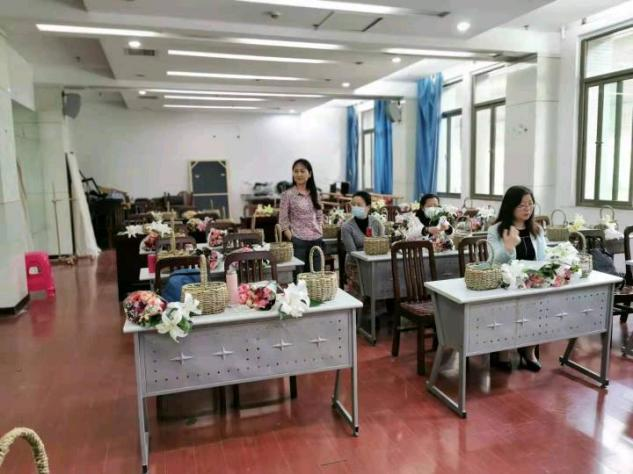 2021年4月28号下午,外语学院1033室花团锦簇,人声鼎沸。外院第一期职工“繁花似锦,生活如歌”插花艺术课堂开展得如火如荼。这是外语学院工会为丰富教职工业余生活而专门举办的。