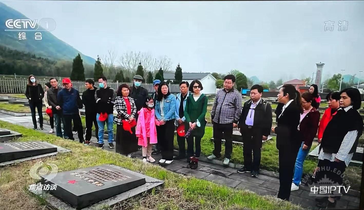 参观烈士陵园时,央视焦点访谈节目组对联合支部进行了跟拍。胡谷明、鄢畅、张东燕老师接受了记者采访。三位老师都表示,学习了烈士事迹,非常感动,深受教育,希望这样的红色教育活动能经常举办,切身感受我们党的革命历史和建立巩固社会主义政权历程中的艰辛与辉煌,把红色基因代代相传。