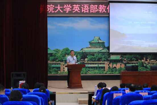 首先,党委副书记、工会主席胡浩致辞,他对外语学院大学英语部在过去一年内取得的成绩给予了肯定,强调学院将不断加强二级教代会标准化建设。他说,学院领导班子高度重视发挥学院教代会代表的民主监督作用,学院党委会和党政联席会多次强调,学院重大决策,特别是涉及到师生员工利益的重要事项,都必须通过教代会表决之后才能执行。他还指出,此次会议大学英语部就给全院做出了很好的表率,下一步学院将推动院教代会代表们履职能力的提升,使代表真正能“代表”,让代表们积极主动地为学院发展建言献策,监督学院各级领导的重大决策。