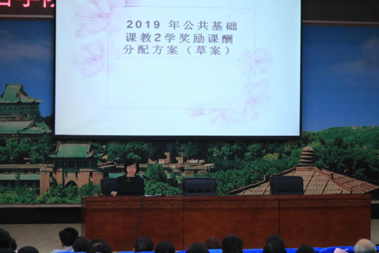 随后,外语学院大学英语部主任程向莉就《大学英语教学部公共基础课奖励课酬质量提升方案》(以下简称《方案》)进行说明。她介绍了《方案》的制度背景、常规工作程序以及2019年的实施状况并提出了2020年教学质量提升方案及大学英语教学奖励课酬新分配方案,新方案着重强调了以工作量和教学质量两大指标为基础的分配原则。