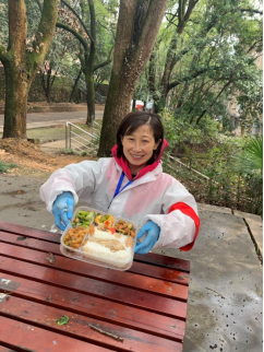 11:30左右,我已经走了大约10000步了,领取了盒饭,细看盒内内容,以前不大喜欢的土豆条、黄瓜丁、青椒鸡蛋、小白菜,特别是那只横卧在米饭中间的鸡腿:给我一种菜品丰富、味道真佳的感觉。毕竟,宅在家里这么长时间了,一个多月下来,还没有为一顿饭做过这么多道菜呢。
