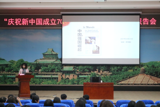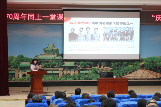 怀着激动的心情,我有幸参加了“庆祝新中国成立70周年同上一堂课”专题报告会。杜莉老师为我们带来了一场主题为:《大道行思,取则行远——谈中国道路的底色、特色和亮色》的演讲。老师独到的见解让我深受鼓舞和教育,也对中国特色社会主义的优越性有了更为深入的思考。