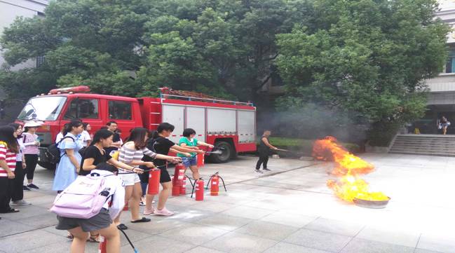 报告结束后,李涛副科长携多名消防队员指导学生进行了灭火器实地操练,学生们以极大的热情排起长队来亲自体验灭火器的操作,不少学生表示,这是他们第一次亲身近距离接触灭火器材,对自己又掌握一门新技能激动不已。