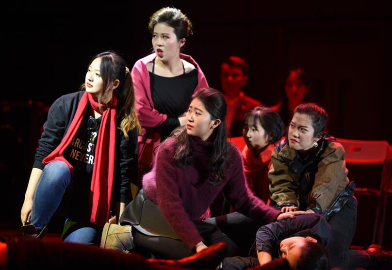 作为协办单位,对此次合作给予了大力支持。英文系成立了由系主任朱宾忠教授领导的工作小组,吸引了我校各个院系和年级的英语话剧表演爱好者参与报名,并在11月21日完成了初步选拔。筹备阶段的指导和排练工作由熊杰平、戴丹妮和张东燕三位老师负责。12月11日,西蒙•戈德温先生接手前期工作,完成演员挑选和角色分派,开始在无码流出