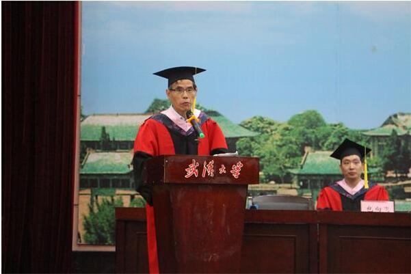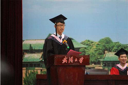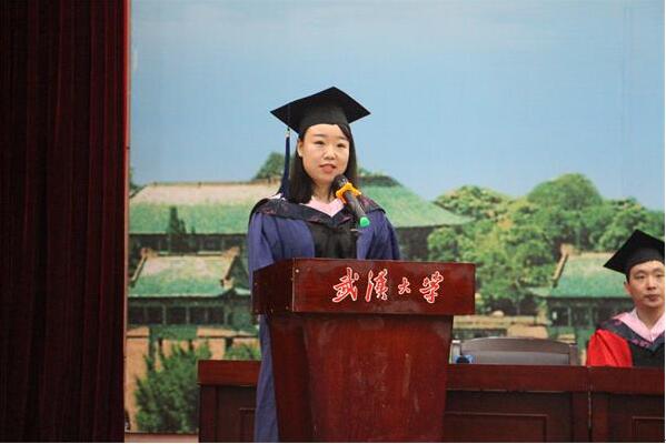 来自2016届英语语言文学专业的硕士研究生易晗同学首先代表所有应届研究生毕业生表达了对各位老师、家长的感谢。随后,易晗同学对自己三年的研究生生活做了简单的回顾:三年前在外院经历了人生第一次的拨穗正冠,两年前在外院发表了竞选研究生会主席的演讲,一年半以前在外院做了第十届研究生会的述职报告。她的七年,和武大的百年相比微之甚微,也留有很多的遗憾。“我们知道,武大永远是我们的武大,我们永远是武大的孩子!”她的言语间充满了对武大,对外院的热爱与不舍。如她所说,毕业在汉语中是终结,但在英语中却是开端的盛典。珞珈精神留在扉页,精彩静待大家抒写。