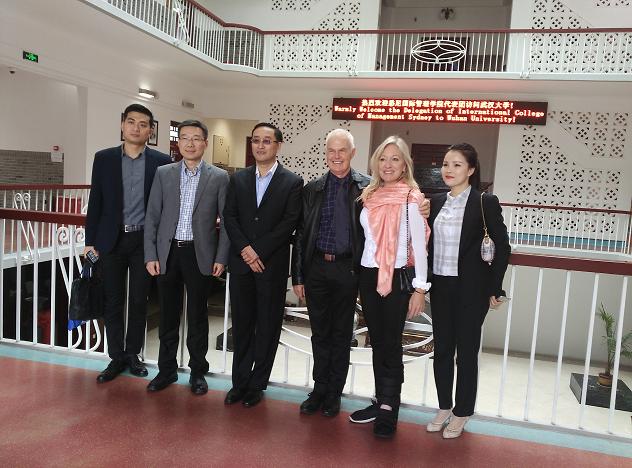副校长李斐在武大行政楼会见来宾。双方介绍各校概况以及中澳高校之间的合作。李斐表示,武大非常乐意同悉尼国际管理学院开展合作,通过两校之间的交流合作,为两国培养和发展更多国际化人才。