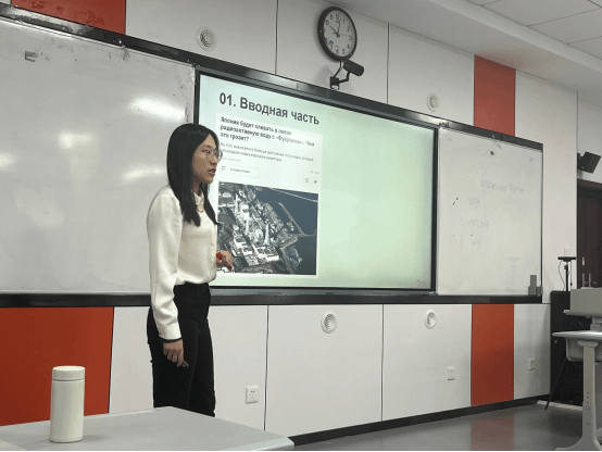 俄语系栾鸾老师在“说课大赛”中表现出色,就教学理念、教学方法、课程思政、教学设计等内容进行分享。栾鸾老师以《全新大学俄语综合教程3》第7课«Охрана окружающей среды»(《环境保护》)为授课内容,以高校非俄语专业俄语基础阶段本科生为授课对象,由“日本福岛核污水排海”事件引入教学,合理采用多种教学方法,熟练运用智慧教学工具,灵活选用多形式教学素材以培养学生听、说、读、写、译的多种能力,细致而完整地呈现了教学设计巧思,生动地展示了教学过程,充分体现了其扎实的俄语教学功底,以及将外语教学与价值引领有机融合的能力和理念,获得大赛评委一致青睐。