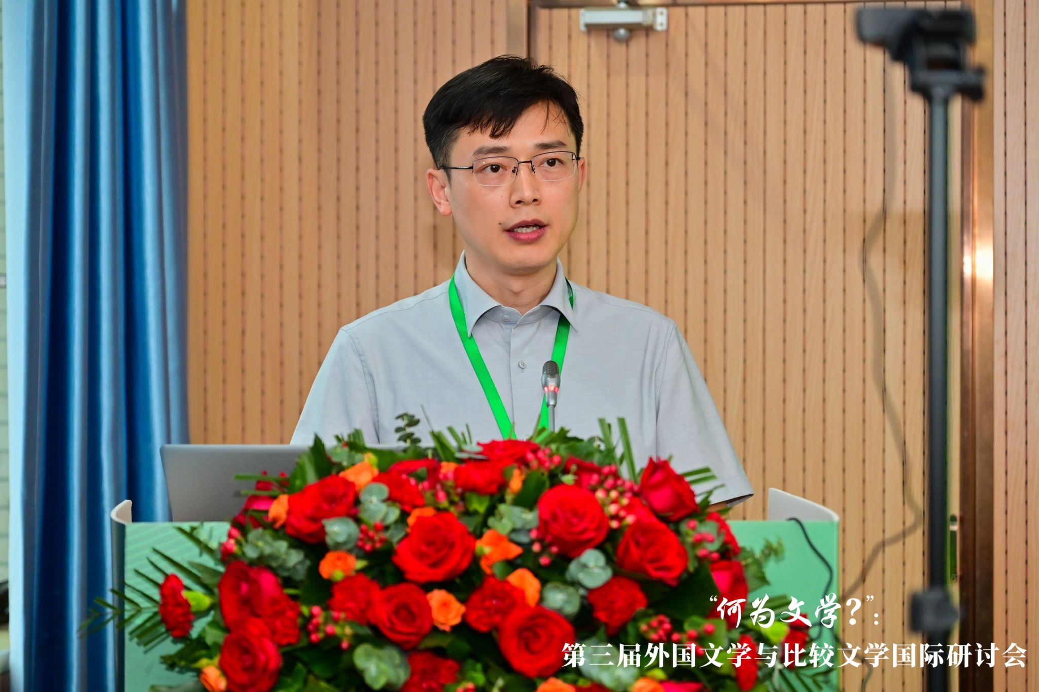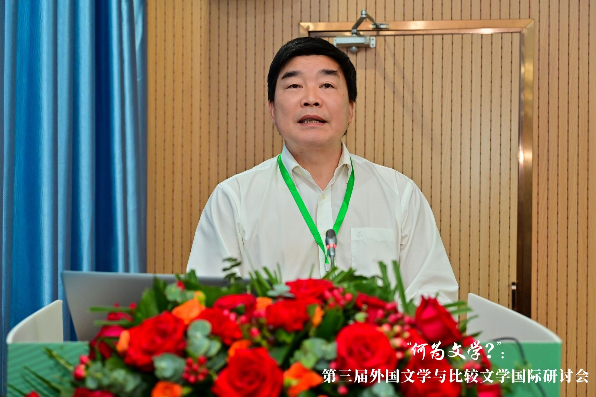 上海交通大学刘建军教授的发言《论文学的认识功能和预测功能》讨论了文学的认识功能和预测功能,就文学在人工智能时代的功能提出了创新性思考;浙江大学/杭州师范大学吴笛教授从《论司各特作品中的法律伦理思想》出发,探讨了瓦尔特·司各特作品中的法律伦理思想,为理解司各特作品的深层意义提供了新的视角;南开大学/南方科技大学王立新教授带来题为《古典学研究方法与古代东方文学——以希伯来文学为例》的主旨发言,以希伯来文学为例,探讨了古典学方法在古代东方文学研究中的应用;上海交通大学彭青龙教授在题为《中国式现代化与外国文学研究转向》的发言中,讨论了中国式现代化与外国文学研究的关系,以“中国式现代化与外国文学研究转向”为外国文学研究在中国的发展提供了新的思考。