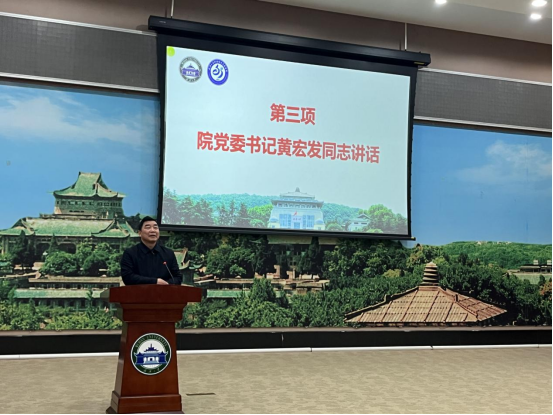 院党委书记黄宏发作总结发言。他代表学院党委对大会的召开表示热烈祝贺,对全院教职工的辛苦付出致以诚挚谢意。黄书记指出,2024年学院各项工作取得了一定的成绩,这些成绩的取得,得益于习近平总书记和党中央的坚强领导,得益于学校党委的支持和指导,更得益于全院师生同舟共济,团结一心。希望在2025年,全体教职工和各位工会会员能够尽职尽责,增强政治意识、责任意识、大局意识和团结协作意识,共同为学院的发展贡献力量。