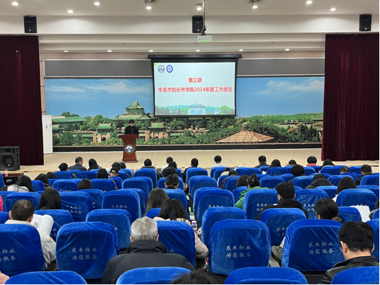 发展面临的挑战与存在的不足,阐述了2025年重点工作和基本思路。他指出,新的一年,学院领导班子将紧紧围绕“深化改革年”主线,在更高起点全面提升学院办学水平和学科发展水平,进一步凝心聚力,踔厉奋发,带领全院师生员工开创学院高质量发展的新格局。