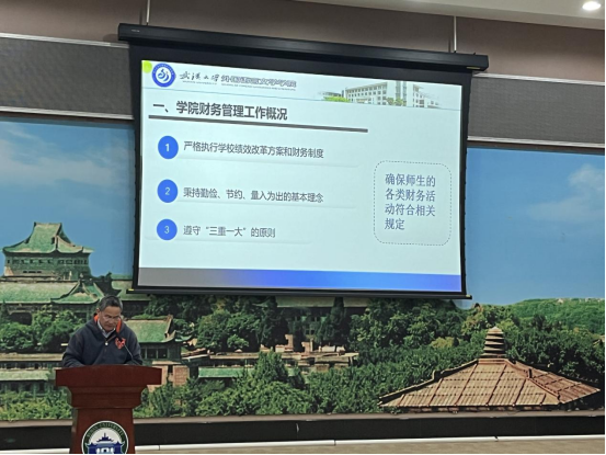 2023-2024年度财务收支情况、基本财务数据分析和2025年度财务工作思考。他指出,外语学院将坚守“勤俭办院,量入为出”的原则,继续做好学院财务工作。