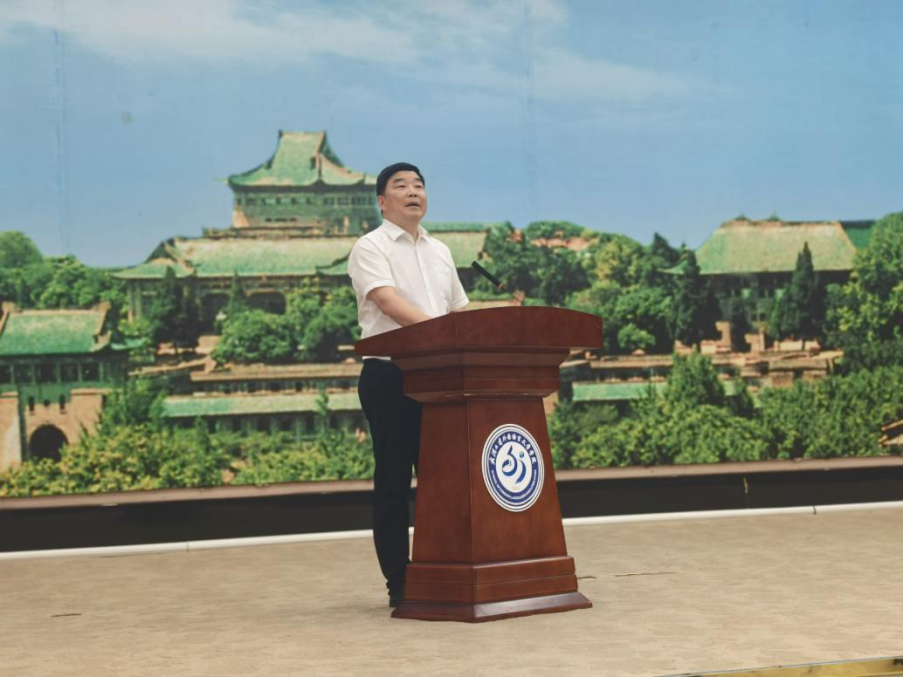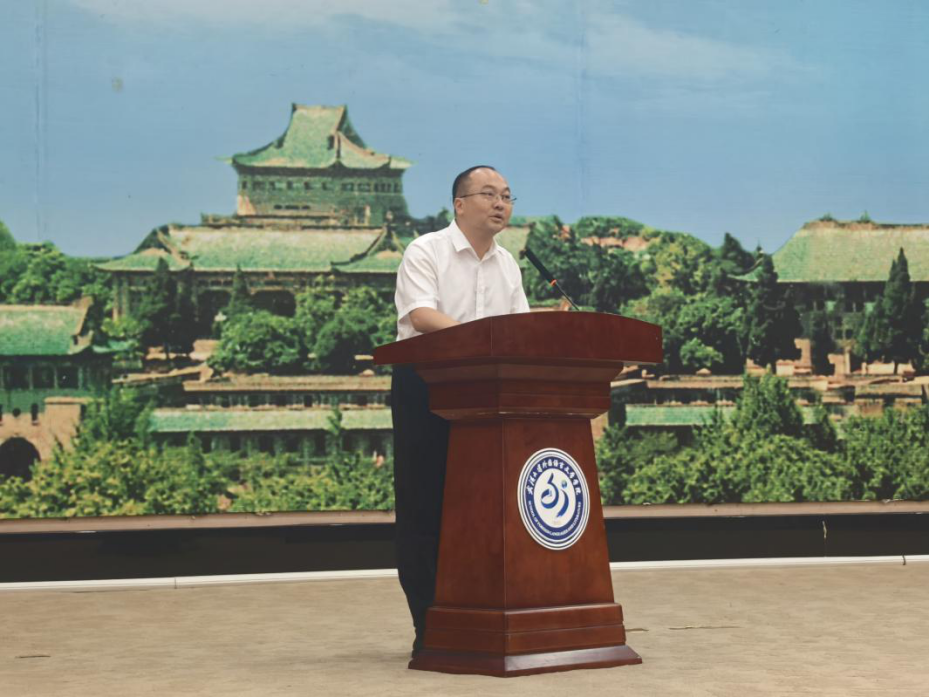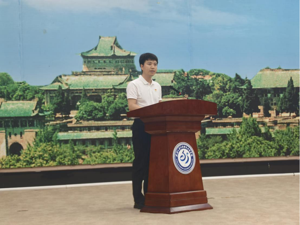 新任学院党委书记文云冬发言。他表示坚决服从组织安排,并将以高度的政治责任感和饱满的工作热情,尽快适应和投入到新的工作中来。并表态要牢记使命、勤奋工作,加强学习、提高素质,顾全大局、团结同志。以立德树人、服务国家战略为宗旨,全域统筹推进外语学科建设,为创建高水平、研究型、国际化的一流外国语学院努力奋斗。