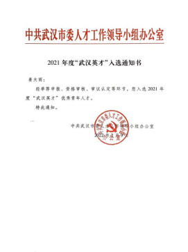 祝贺姜大雨博士入选2021年度“武汉英才”优秀青年人才!
