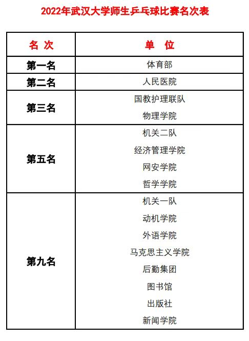本次比赛由院工会主席周翠芳作领队,副院长杨牧文任队长,工会副主席何发兵、工会副主席王敏、工会委员胡云霄作后盾,马萧、熊伟、黄忠、黄敏、刘庆荣、李应清、韩儒雅(学生)作为队员参加了此次乒乓球比赛。此次比赛,外院队员平时苦练球技,奋发向上,经过一年的训练,首次小组出线,创造了外院乒乓球史上最佳战绩。