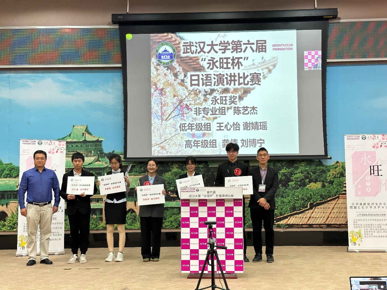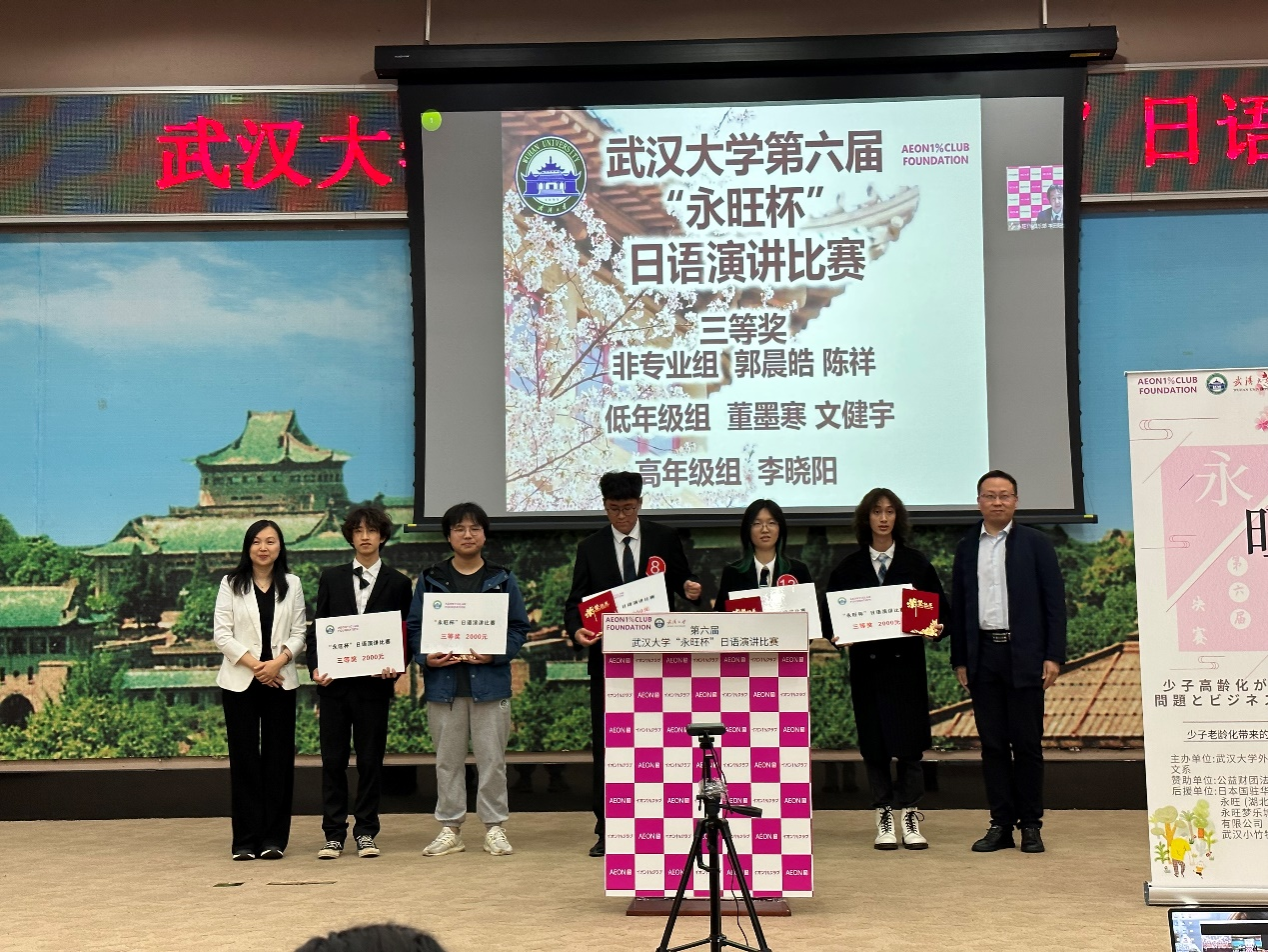 和永旺集团及公益财团法人永旺1%俱乐部的合作始于2017年,每年由公益财团法人永旺1%俱乐部和永旺集团旗下的三家湖北公司——永旺(湖北)商业有限公司、永旺梦乐城(湖北)商业管理有限公司、武汉小竹物业管理有限公司捐出15万元设立“永旺奖学金”,奖励15名品学兼优的学子。“永旺杯”日语演讲比赛也是“永旺奖学金”的一环,由公益财团法人永旺1%俱乐部赞助,致力于为中日交流和国际合作搭建桥梁。