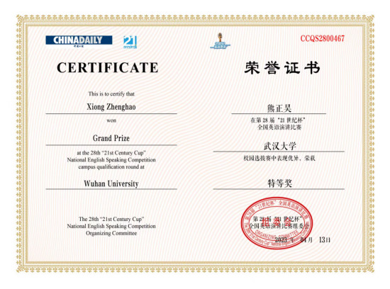 据悉,“21世纪杯”全国大学生英语演讲比赛由中国日报社创办于 1996 年,一直为海内外青年学子相互交流、学习借鉴搭建舞台,帮助他们在实践中不断提升讲好中国故事的能力。自创办以来,“21 世纪杯” 为一大批青年才俊脱颖而出助力,越来越多的青年学子在这个舞台上用生动的故事,向世界展示中国的发展以及中国对人类发展所做出的贡献,让世界了解中国。