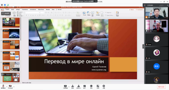 邀请,带来了题为“网络世界中的翻译”(«Перевод в мире онлайн»)的讲座。本次讲座由俄文系胡谷明教授主持,俄文系全体教师同学及其他院校的老师同学以腾讯会议的形式共同聆听了此次讲座。
