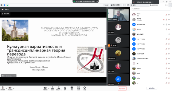 邀请,带来了题为“文化变异与跨学科翻译理论” («Культурная вариативность и трансдисциплинарная теория перевода»)的线上讲座。本次讲座由俄文系胡谷明教授主持,俄文系全体老师和同学以及其他院校的老师同学们以腾讯会议的形式共同聆听了此次讲座。