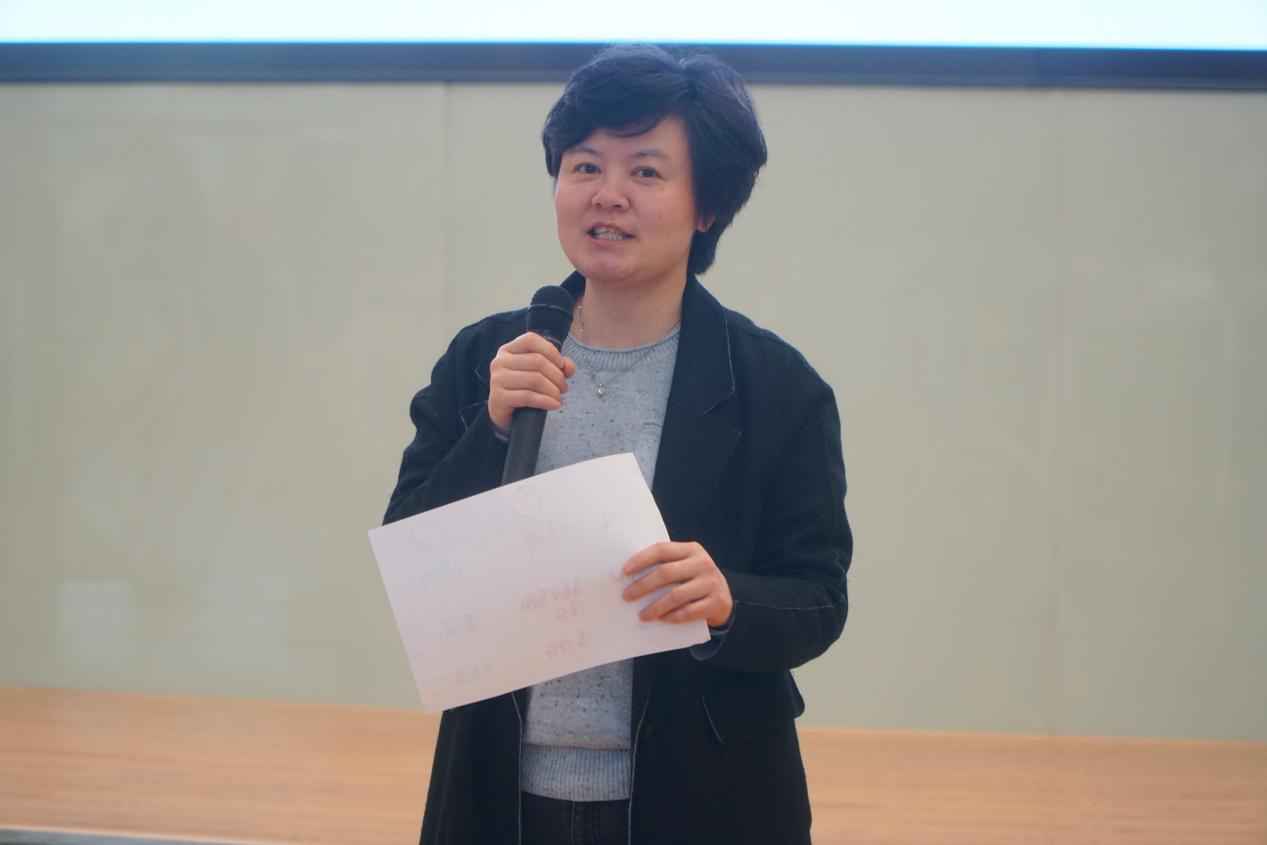 在万臻老师引导下,老师们开始对自身教学进行反思,如何能结合大学英语课的教学目的和内容进行教学实践,怎样才能在大英课堂开展参与式学习与互动。有的老师提出来可以让学生现场画脑图或者设计海报;有的老师建议可以列出标准,给学生以指导;还有老师热心给同事出谋划策,如让滔滔不绝的学生用三句话说出自己的重点等。