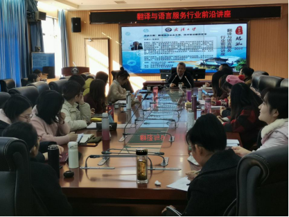 ,做客珞珈2019翻译与语言服务行业前沿讲座,讲座主题为“翻译助力企业发展,技术驱动翻译变革”。