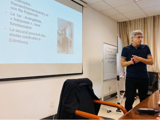 在随后的讲座中,纳迪维尔教授选取了马达加斯加、莫桑比克几国作为主题,以地图、图表、文献图片等为辅助,向同学们详细展示了如何着手研究非洲国家的历史以及如何利用可收集到的学术资料进行研究,大大开阔了同学们的视野,扩展了大家的学术批判思维。
