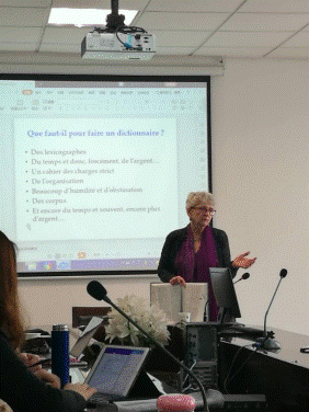 本次讲座主题是:词典编纂——从纸质版到网络版。Neefs教授首先简要介绍了法语词典的历史,对参考用词典和百科类词典进行了区分。然后她向同学们介绍了编纂词典的准备工作。对于编纂过程中所需要注意的问题,Neefs教授则提出词典目录需要包含不同类别的词汇,例如动植物、人体各部位、工具、武器等。在讲座的后半部分,Neefs教授着重说明了编纂双语词典的方法,一个好的双语词条必须具备结构上的完整分析,在语境下对词条进行解释,而非机械对照。同时,也要注意词条的排版,以方便读者进行查阅。最后,她向大家展示了如何在电脑上编纂词条及对应的编程代码。