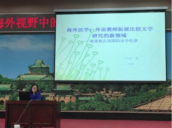 第一位主讲的何博副教授用四个问题串联起了自己的美国访学经历以及所学所获。第一个问题是“为什么去美国学习中国文学”。她谈到,梳理域外中国文学研究的历史线索,追踪、引介海外中国文学研究的最新成果,不仅仅是为了客观准确地呈现海外汉学的历史和现状,更主要的是希望能藉此拓展中国文学研究的新材料、新问题和新视野,从而推动本土中国文学研究的深入发展。第二个问题是“为什么英文教师可以研究汉学”。她指出,英语教师有着很强的语言优势。英语专业背景使英语教师能够直接阅读欧美汉学著述的原文。此外,海外汉学是外语专业比较文学研究领域一个可供开拓的新园地。中国文学与文化在域外的传播史与影响史也是英语教师可以一展身手的领域。第三问题是“‘我’是如何在美国访学期间开展研究工作的”。何博副教授谈到自己在美国的学习主要是由听课和参加相关的学术会议、专题讲座以及参观展览构成的。此外,她还经常出没在图书馆搜集与整理学术相关的资料。最后,何博副教授还分享了如何申请国家基金委访问学者项目的流程以及相关的注意事项。