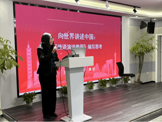 讲座伊始,黄玫教授首先谈及外语教学与思政教育有机融合的重要性及难点,指出外语类专业的“当代中国缺席症”,从而强调《理解当代中国:俄语演讲教程》编写的实践意义和时代意义。紧接着黄玫教授介绍了教材编写团队,围绕课程思政、融合学习、能力导向等方面分享编写理念,旨在引导学生通过“理解当代中国”、“向世界讲述中国”两个主要板块的学习,不断加深对习近平新时代中国特色社会主义思想的理解,提升语言运用能力、公共演讲能力、思辨能力等多元能力,培养家国情怀和国际视野,增强学生促进中外文明交流互鉴和构建人类命运共同体的使命感。