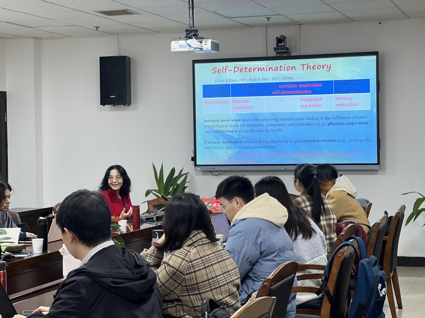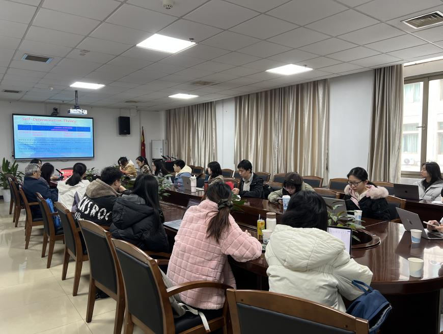 师生开展线上学术讲座,主题为“Motivations and Needs of English as L1 Speakers Learning Chinese at Overseas Universities (海外高校英语母语者学习中文的动机与需求)”。该讲座由英文系李丹丽老师主持,黄忠老师等教师和硕博士生到现场聆听了讲座。