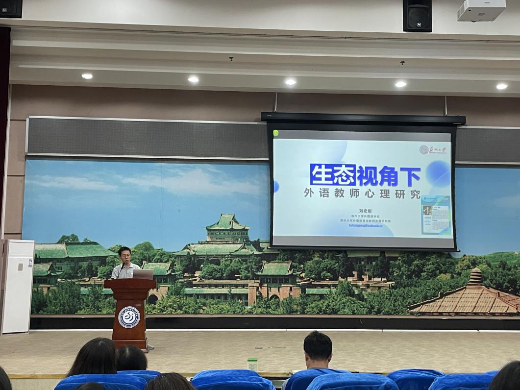 刘宏刚教授在讲座中首先分享了他的个人科研经历,并介绍了相关课题的研究背景。他指出,教师心理研究对于教师的教育支持、职业发展以及学生心理状态具有重要作用。刘教授通过梳理学术文献,分析了该领域研究如何受到积极心理学、外语学习心理研究的影响,以及研究前沿在主题和视角上的不断拓展。
