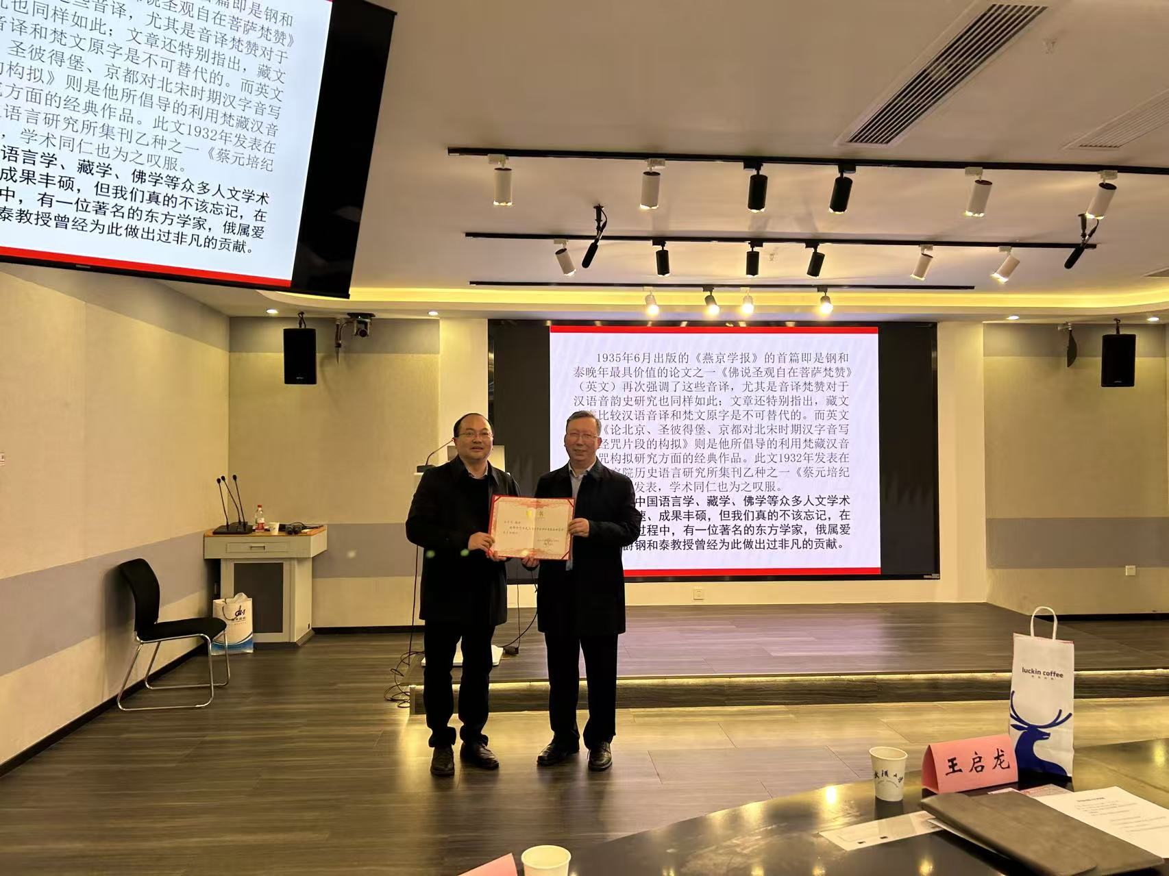 讲座伊始,王启龙教授便为在场听众梳理了钢和泰的人物生平和学术经历。钢和泰(1897-1937)是20世纪二三十年代活跃在中国人文学术界的传奇学者。他本人出生于俄属爱沙尼亚贵族家庭,后来继承了男爵爵位,人称钢和泰男爵。钢和泰在欧美接受过当时最严格也最先进的学术训练,长于佛教梵藏汉文献研究。1917年来华后,曾先后任教于北京大学、哈佛大学,但任哈佛大学教授后他的主要工作和学术活动还是在北京。本讲座主要简述钢和泰在华期间与中外学者的交际互动,以及他的学术实践对民国时期人文学术现代转型的影响,重点从佛教文献学角度认识他对语言学和佛教研究的影响,完整展现了这位传奇学者在近代中外学术交流史上的独特价值。