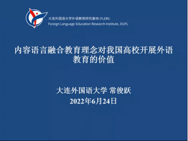 讲座中常教授指出:传统的技能导向外语教学理念(SOI)在外语人才培养方面存在难以克服的缺陷。为此,在汲取我国外语教育史上的成功经验、审视国内外典型外语教学方法理念的优势与缺陷、借鉴北美CBI及欧洲CLIL关注内容作用的优势、开展本校外语教育教学改革探索的基础上,常教授提出了具有中国本土特色的内容语言融合教育理念(CLI),并解读了内容语言融合教育理念的内涵,同时阐述了在课程体系、教材开发、教学探索、学生评价、人才培养、教师发展等方面内容语言融合教育理念对我国高校外语教育发展的价值。此外,常教授以大连外国大学多年来基于内容语言融合教育理念进行的系列教学改革为例,对外语教学改革的方式方法进行了具体的说明,展示了改革前后课程差别及改革带来的显著成效,提供了具有重要理论指导意义的外语教育理念模式。