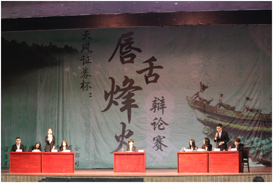 第十三届学术文化节“天风证券杯”唇舌烽火辩论赛决赛于信部大活拉开了帷幕,参赛的队伍分别是历史学院辩论队、文学院辩论队、新闻与传播学院辩论队以及无码流出