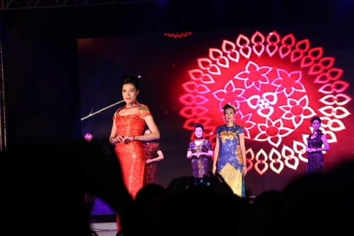 学生会国际礼仪交流与礼仪部带来了一场精彩的开场秀——空灵女声,宛转悠扬。唱罢,数人破纸而出,仿佛预示着金秋早已迫不及待与观众见面,让人于静默之中观其绽放。随后艺术协会老师以旗袍展示出场,仪态端庄,尽显东方女人的优雅。正如她们的主题一样:遇见旗袍,遇见最美的自己。纵然年华易逝,然而风韵犹存。
