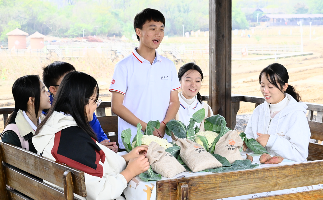 随着工作人员一声令下,7个小组向着任务点进发,师生们要在规定时间之内,在园区内迅速找到对应的打卡位置,并完成菜苗定值、扎染白布、农事星主播三个定点劳动任务。7个小组各自有自己的进度把控,在队长的带领下,有条不紊的染好自己满意的花色,在田野上奔跑,种植好每一颗菜苗,在助农直播环节卖力地描述农作物的优良品质。在任务完成之后,师生们获得了柴火灶所在地的入场券。在挥汗如雨的过程中,大家深刻体会到了劳动的艰辛与不易,也将更加珍惜每一粒粮食与每一份劳动成果。