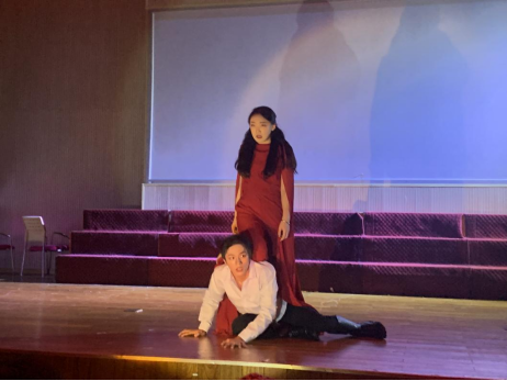 《麦克白》剧组是首届“友邻杯”莎士比亚(中国)学生戏剧节(下简称“莎剧节”)大学生英文组决赛入围队伍,《麦克白》的献演,更是将本次英文话剧比赛推至全场高潮。由武大外院鄢畅老师改编指导的经典莎剧《麦克白》在开场阴森诡异的绿光中徐徐展开,借助光影与音效,将麦克白的欲望与堕落、麦克白夫人的阴狠与罪罚展现得淋漓尽致,且具有极强的戏剧张力和浸入式体验,演员一呼百应,“Macbeth shall never be vanquished”的呼声此起彼伏,震撼全场。