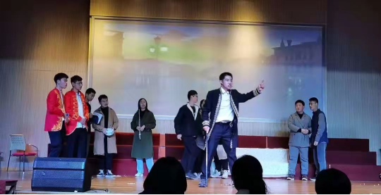 附属中学2021年英文话剧比赛的舞台上,《麦克白》剧组与高二年级9个班级的同学同台展演,架起大学生与中学生沟通交流的心灵之桥。