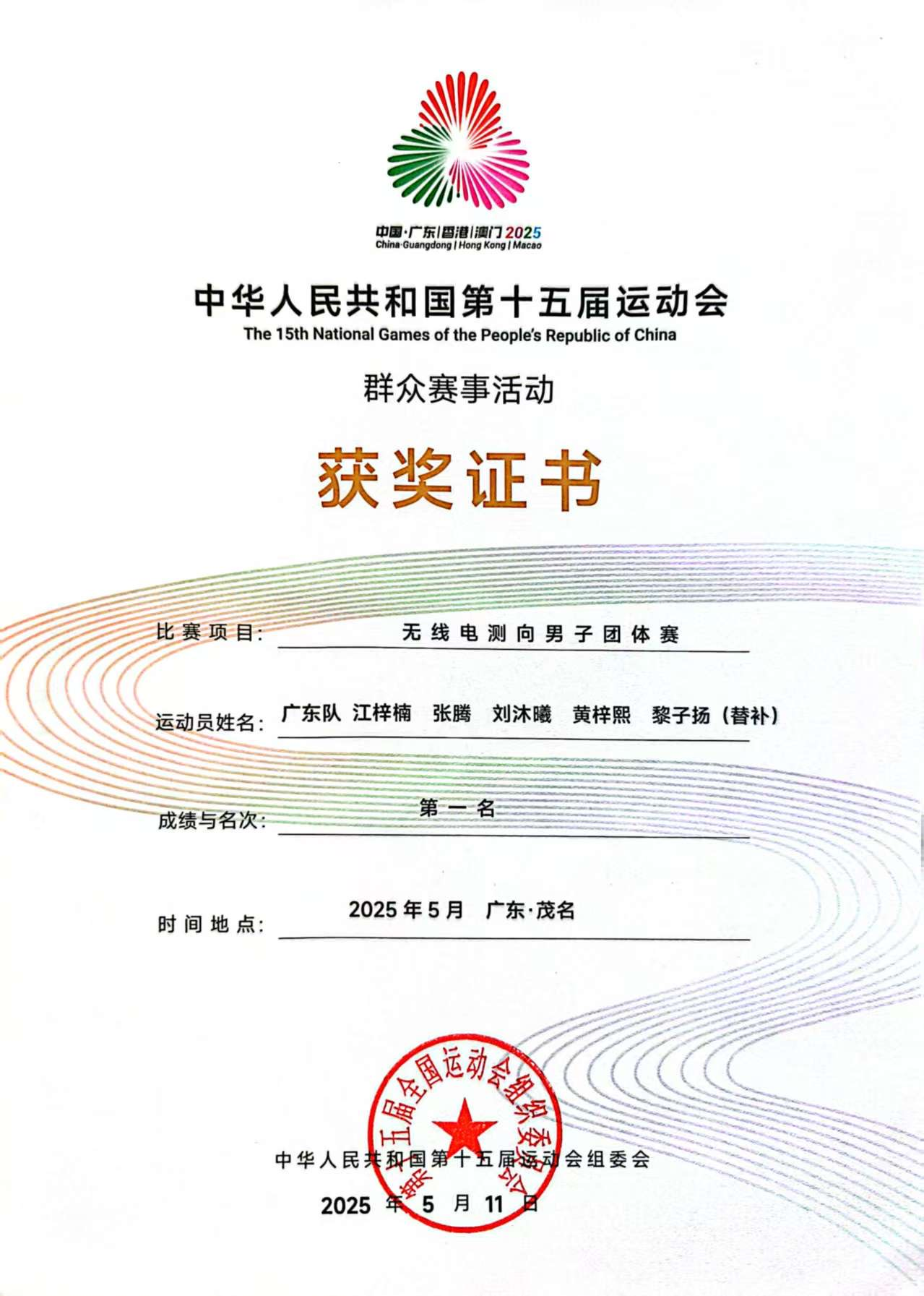 2025年5月6日-11日,中华人民共和国第十五届运动会群众赛事定向项目决赛在广东茂名隆重举行,无码流出 2024级的刘沐曦同学代表广东省无线电测向队,参加了本次赛事,并勇夺3.5Hz短距离赛个人冠军。