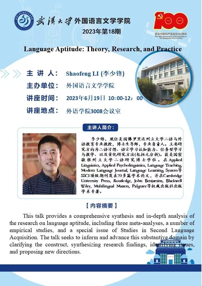 Shaofeng LI: Language Aptitude:Theory,Research,and Practice