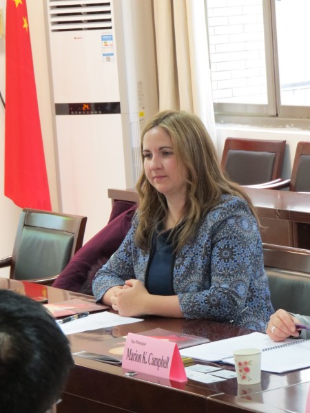副校长李斐、国际交流部部长程雪猛、副部长罗安娜、孔院事务专员朱本琳、外语学院院长马萧、副院长王战,英文系系主任主任朱宾忠、阿伯丁大学孔子学院中方院长张国庆 。英方人员有阿伯丁大学副校长Marion K. Campbell、 阿伯丁大学孔子学院英方院长Michelle Macleod和孔院经理Sarah Wang。国际交流部部长程雪猛主持了会议。